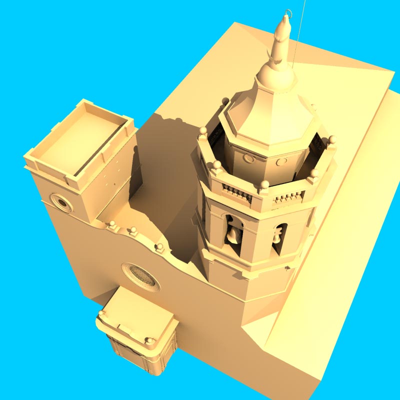 Step 2. The modelled of the hexagonal tower is finished. The square tower is almost finished, I didn't start the forge belfry sited on the top. The most of the front and the main entrance are done as well. In total there are 62000 polys.